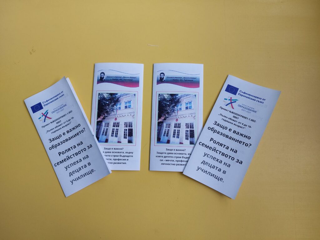 •             Поддейност 1.3 – Работа с родители за разясняване на ползите от образованието;